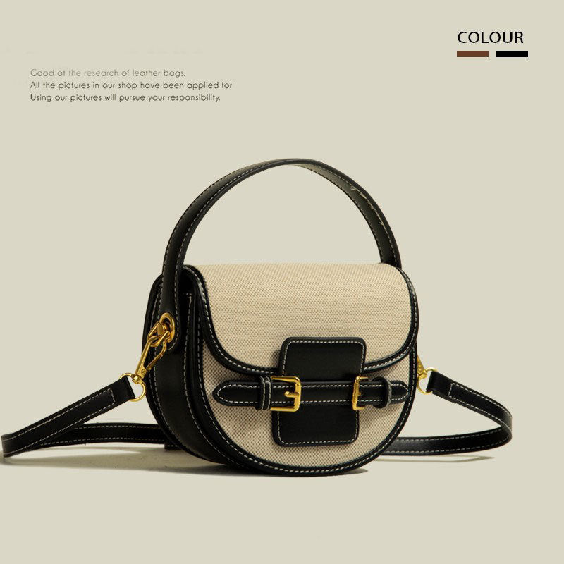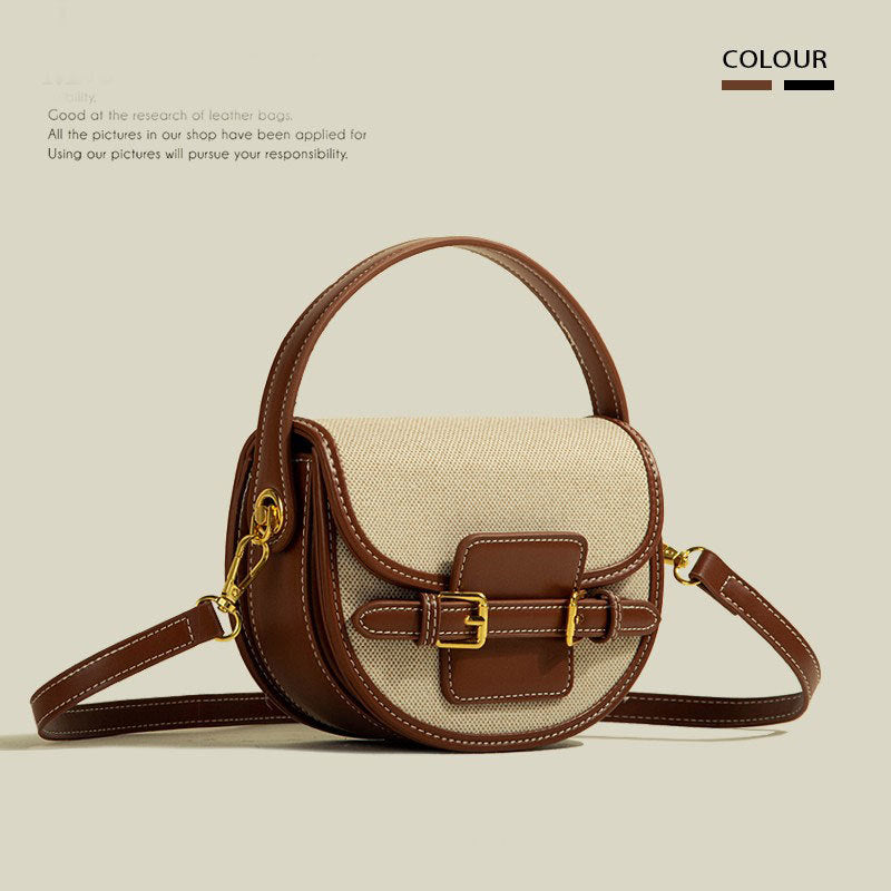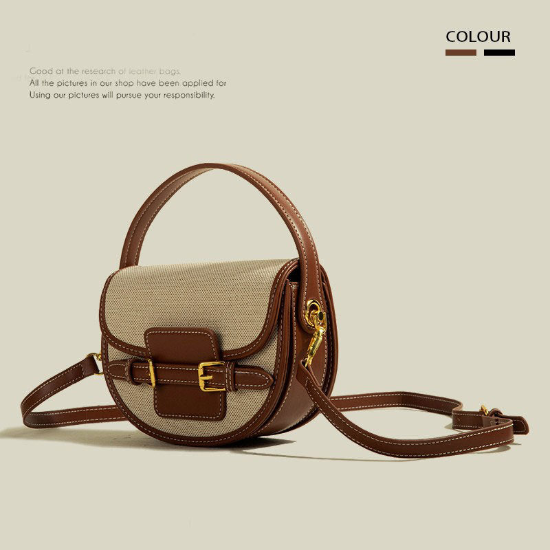 Retro-textured crossbody saddle bag